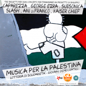 FIRENZE – Inizia stasera, alla Festa dell’Unità, la lotteria destinata alla raccolta fonti per il progetto “Terra è libertà” di Arci Firenze, in palio i bilietti per il concerto di Caparezza del 7 Settembre al parco delle Cornacchie e per quello di Ani di Franco l’11 alla Cavea. I bilietti della lotteria, che è organizzata da Arci Firenze, Giovani Democratici e Le Nozze di Figaro, hanno il prezzo di 1€ e saranno disponibili presso gli stand dei Giovani Democratici e della ruota di Montespertoli.