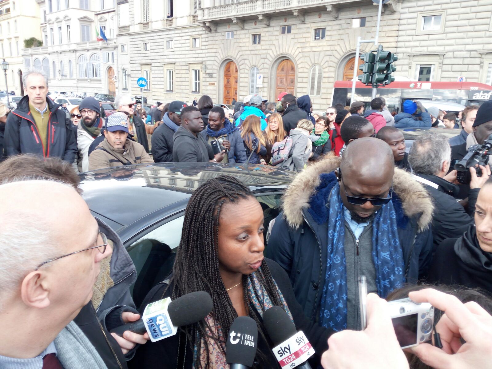 A invitare alla calma hanno parlato la presidente della comunità senegalese Nye Ndyaye e una deputata del parlamento senegalese, chiedendo”verità e giustizia” su quanto avvenuto e ribadendo la piena fiducia nella magistratura e nelle istituzioni della città. Mentre una parte dei manifestanti è rimasta sul ponte, luogo prescelto per il presidio, un altro gruppo di manifestanti di circa un centinaio di persone si è spostato su lungarno Vespucci, con l’intenzione di effettuare un corteo (non autorizzato dalla questura) e fronteggiate da un cordone di carabinieri e poliziotti in assetto antisommossa. Per circa una mezz’ora i manifestanti hanno scandito slogan conto il fascismo, il razzismo e le forze di polizia. Non sono mancati anche alcuni momenti di tensioni, con spintonamenti e qualche manganellata da parte degli agenti.