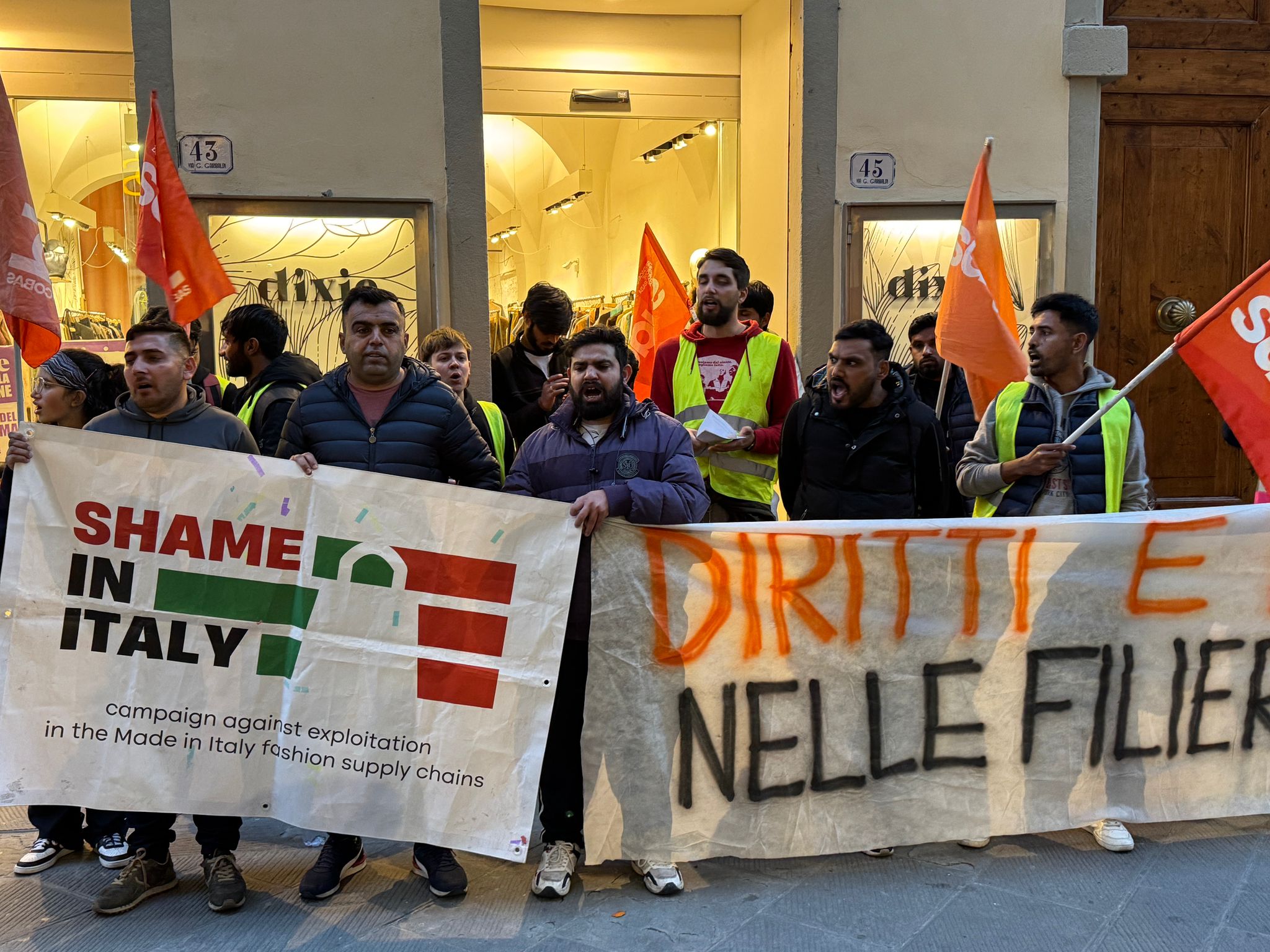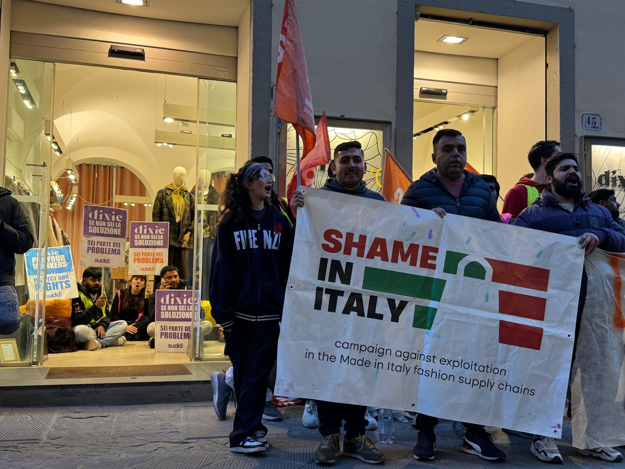 Come è avvenuto anche nelle settimane scorse per i marchi Canadian e Patrizia Pepe, ieri i lavoratori hanno occupato con un blitz il negozio di Dixie a Prato minacciando di rimanere lì ad oltranza finché in serata non è arrivata la comunicazione che anche il noto marchio aveva accettato di partecipare al tavolo di crisi della stireria dove i lavoratori sono senza stipendio da oltre due mesi e dove uno di essi è stato brutalmente aggredito mentre picchettava davanti all’azienda.