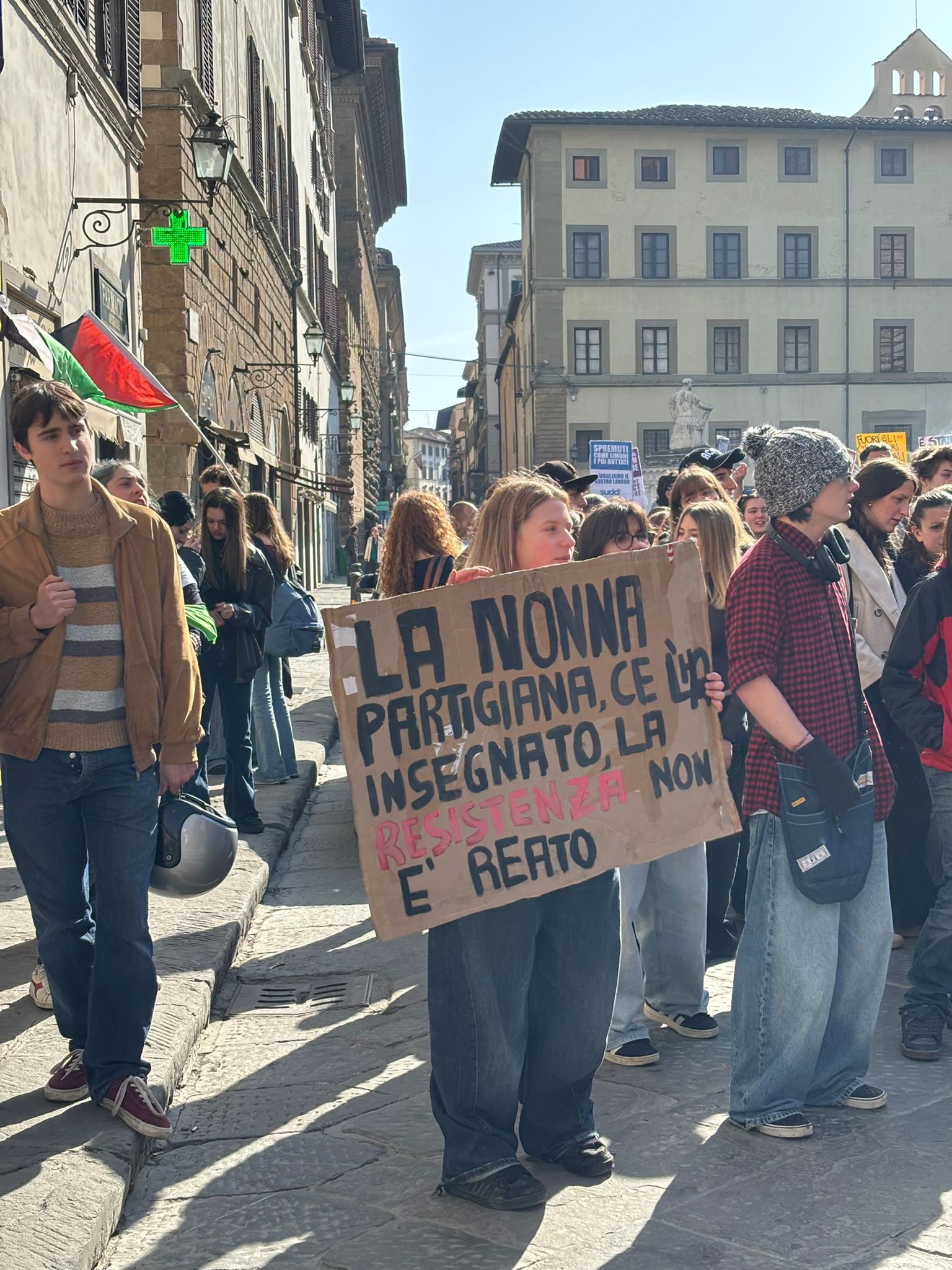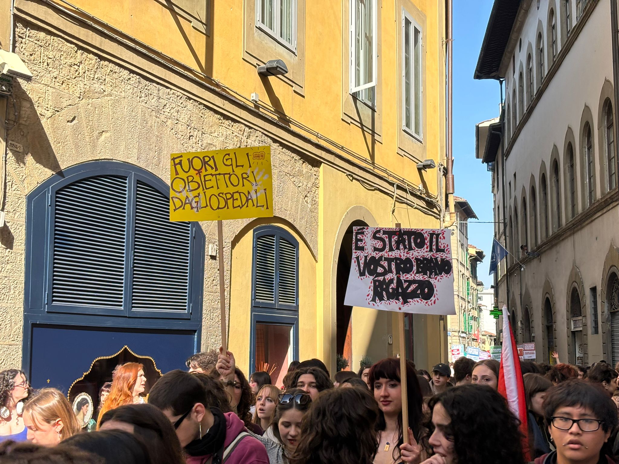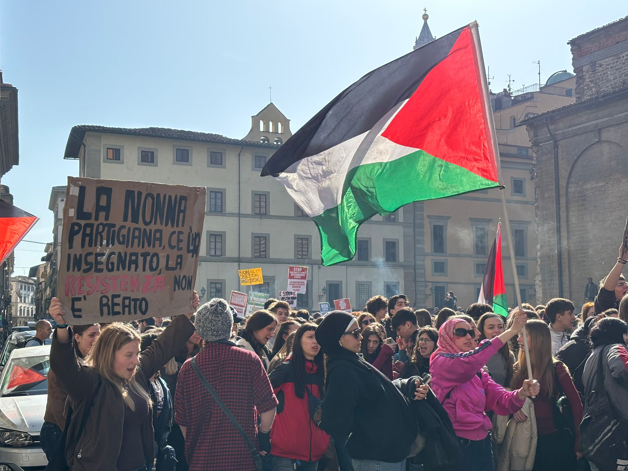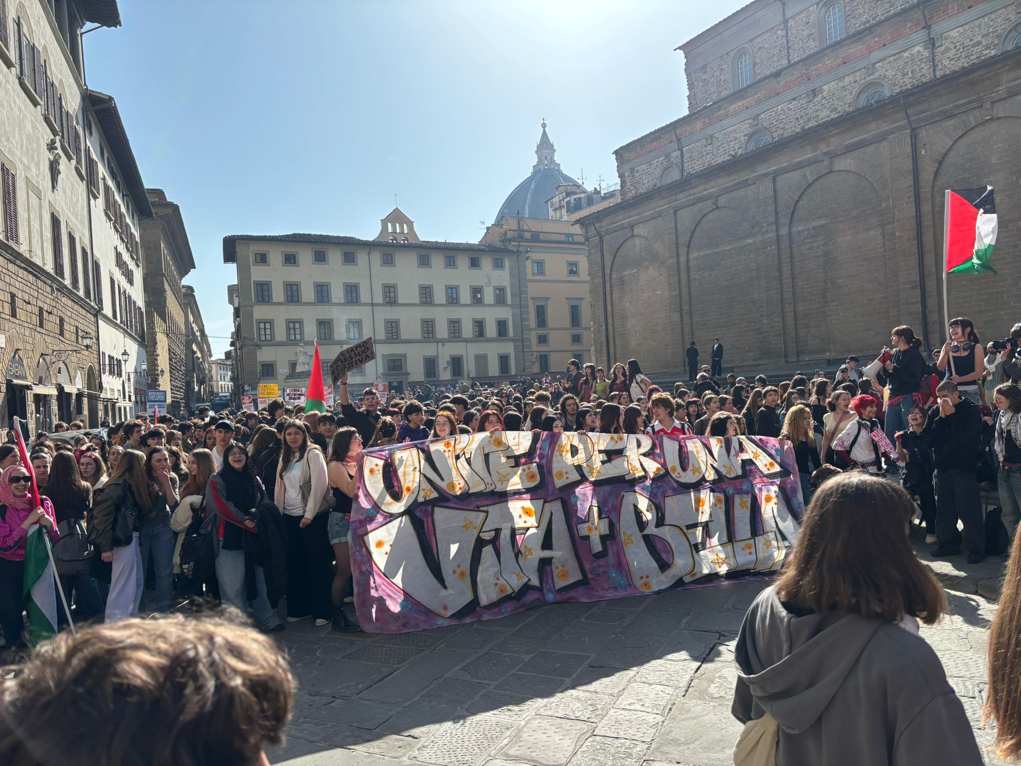 Il corteo, dietro lo striscione “Unite per una la vita più bella” si è mosso da piazza SS. Annunziata verso la zona di San Lorenzo, per poi puntare verso opiazza santa Maria Novella, dove la testa del corteo ha sostato alcuni minuti, prima di ripartire verso l’Oltrarno, con destinazione finale in piazza Pitti.
