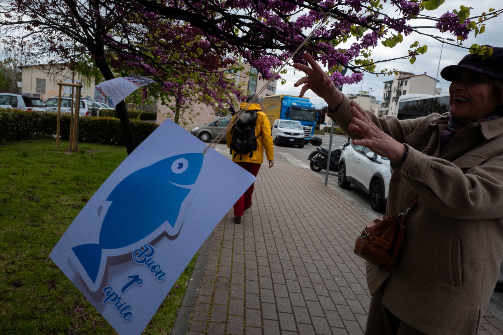 FIRENZE – Blitz “situazionista” dell’associazione “Salviamo Firenze X Viverci” in via Gabbuggiani, all’ingresso dell’area ex OGR, una delle principali aree al centro di progetti trasformazione urbanistica della città ma anche delle polemiche, proprio perché i progetti prevedono 42 mila metri di superficie da edificare. Gli attivisti dell’associazione hanno appeso ai rami degli alberi della via, dei pendoli con dei pesci colorati di cartone, che recano questa scritta: “Vogliono cementificare un pezzo di Cascine costruendoci migliaia di metri cubi di cemento e vogliono attraversare le Cascine con una grande strada che porterà 1800 auto l’ora a ingorgarsi a Porta a Prato. Questo, purtroppo, non è un pesce da aprile”.