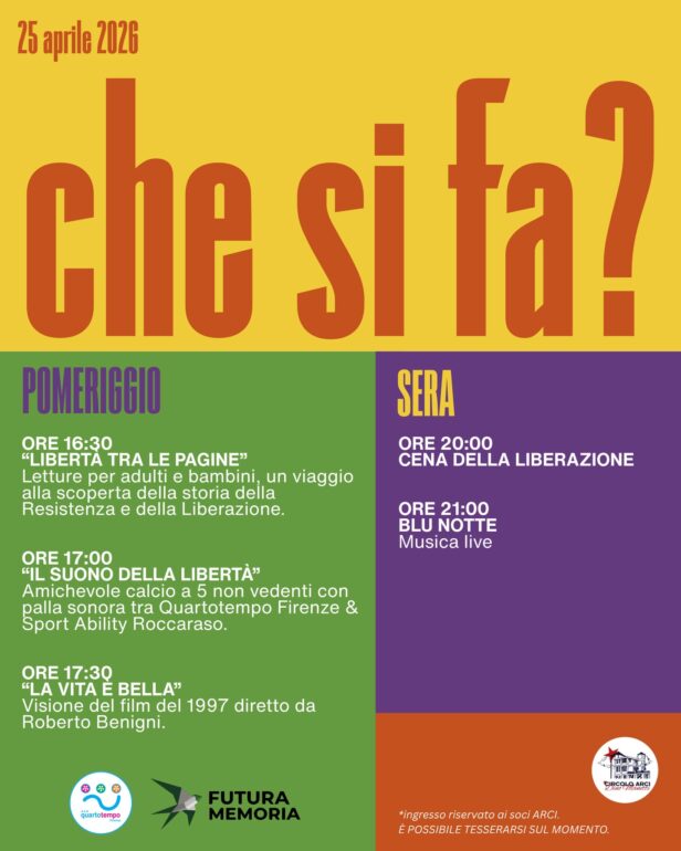 Il programma si sviluppa tra mostre, laboratori, performance e spettacoli che attraversano linguaggi diversi. Tra i momenti principali, sabato 2 maggio alle ore 21.00 in sala Bracci, l’incontro spettacolo Crepe, spiragli ed altre vie di fuga: conversazione semiseria con Alessandro Benvenuti e Daniela Morozzi, uno degli appuntamenti più attesi della manifestazione. A seguire, alle ore 22.15 nel Chiostro delle Celle, il concerto di Musica da Ripostiglio. Sempre sabato 2 maggio sarà visitabile dalle ore 14.30 alle 21.00 la mostra Post Palio: arte, segreti e magie a cura di Alessandro Grazi, mentre dalle 15.30 alle 19.00 la performance itinerante di Edoardo Nardin Il pittore folle_follie d’autore animerà gli spazi della Certosa. In sala Bracci, alle ore 16.00, è in programma lo spettacolo di Alvalenti Tratti di una vita sprecata bene, seguito alle 17.30 dall’incontro con gli artisti della mostra Post Palio. Inoltre, nel pomeriggio alle 16.30, 17.30 e 18.30 si esibirà l’Orchestra AMF della scuola di musica di Follonica diretta dal maestro Stefano Cocco Cantini.