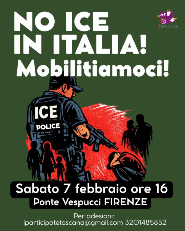 - FIRENZE - "No Ice in Italia: mobilitiamoci!":  Questo è il titolo del presidio manifestazione convocato per sabato prossimo a Firenze contro la presenza sul territorio italiano della ormai tristemente nota pulizia anti-immigrazione statunitense responsabile della morte di Renée Good e di Alex Pretti, e di decine di feriti e deportati durante le operazioni cosiddette anti-immigrazione illegale. L'appuntamento per il presidio, promosso da un ampissimo ventaglio di associazioni, organizzazioni e […]