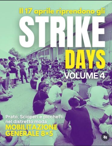 - PRATO - Oltre 10 sciopero e picchetti ad oltranza oggi in altrettante aziende piccole e piccolissime del distretto tessile pratese, domani l’iniziativa di blocco del “Marcolotto Day” per denunciare lo sfruttamento e la mancanza di diritti dei lavoratori del settore moda. Tornano da oggi gli “Strike Days” del sindacato Sudd Cobas, con la proclamazione di un pacchetto di 8 ore di sciopero "solidale", a staffetta, che vedrà unirsi alla mobilitazione dei lavoratori in sciopero - oltre 100 solo oggi […]